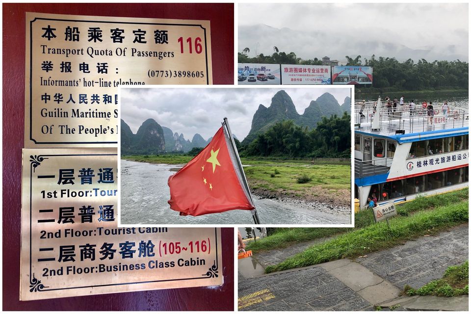 Our morning began early and wet! We unfortunately woke up to rain...but, met Colin smiling downstairs and made our way to the harbeour (about an hour and a half from the city) to board our cruise on the river Li. As we made our way to the boat we realised that the better seats were upstairs...but we weren’t sure where our allocated ones where. By this point Colin had abandoned us as he was due to meet us at the arrival point of the cruise. Much to our surprise and delight, we were upstairs in a small ‘business class’ corner at the front of the boat. Only two tables and the tea lady. In all fairness all the tables and seats looked equally comfortable but the idea of being a little away from the generally loud chinese was a nice add on. We ended up sharing our cabin with a chinese family and some friends of theirs. The son, Enrico (stage name), spoke very good Italian as he studied the language for 6 months in Italy before starting his Engineering course this september at the Politecnico in Turin. How unlikely is that! The family seemed lovely umming and ahing as he translated for them our conversation.