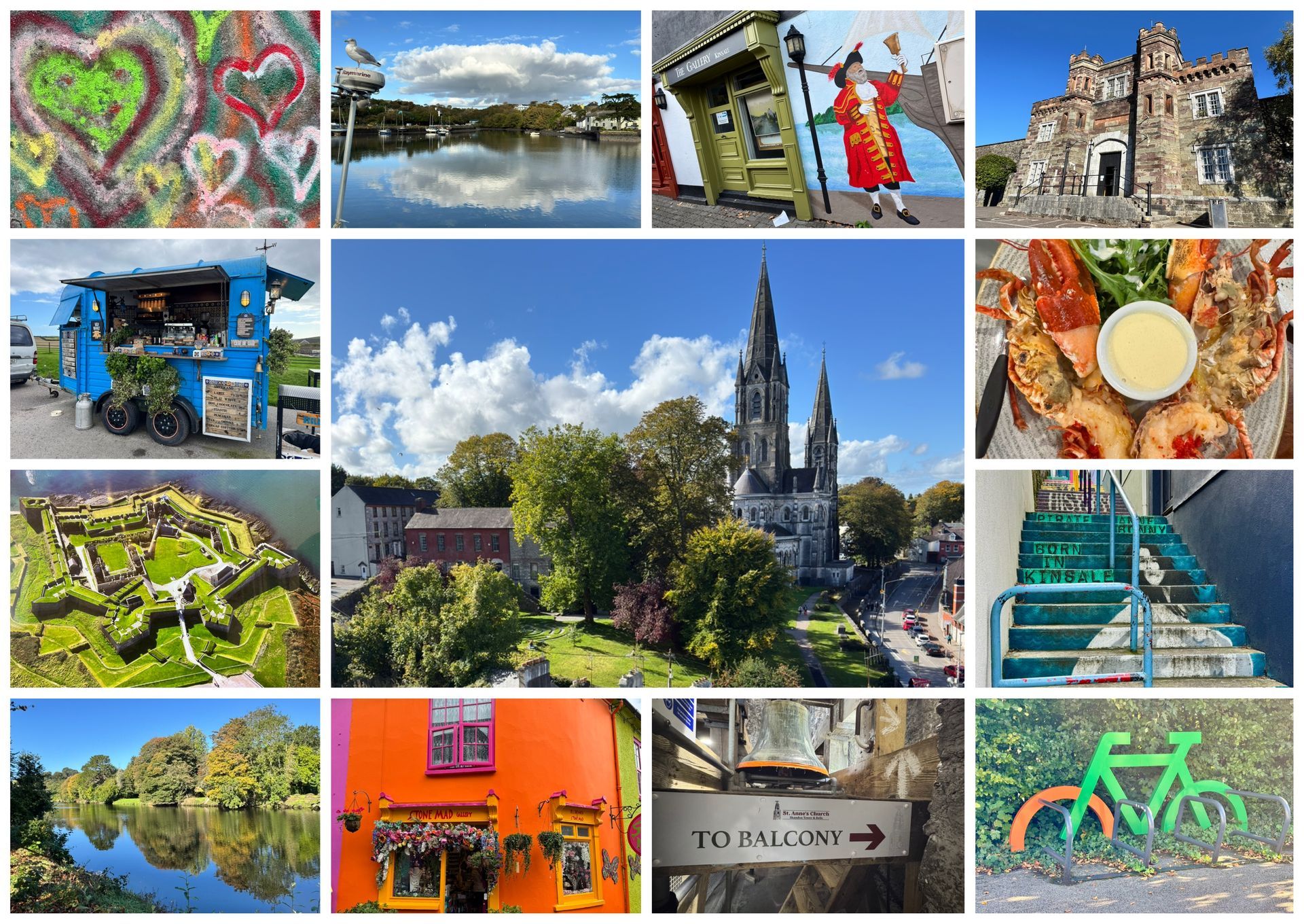 Ad una mezzoretta da Cork si trova il forte di Charles, sulla baia di Kinsale. Una struttura a forma di stella costruita per difendere l’ingresso del porto di Kinsale. Ad oggi è una suggestiva rovina con panorami spettacolari sulla baia e una storia legata ad assedi e vicende militari irlandesi. Il flat white preso dal furgoncino all'ingresso non era assolutamente male! Così come i panorami...Fisiologicamente non riesco a dedicare più di una mezzora a delle rovine senza almeno il beneficio di un audio tour, quindi mi sono riappropriata di 3dom e ci siamo diretti a Kinsale. Kinsale è un porto famoso per le case colorate, il passato marittimo e la tradizione gastronomica. Oggi è una delle mete lungo la Wild Atlantic Way. E le case colorate sono bizzarre: non e' che scelgono mai colori tenui, no no, ci sono case viola di fianco a verdi e blu. Colori molto forti diciamo. Ma,, come una coppia di Italiani che ho incrociato ha detto, si tratta proprio di cultura diversa. In alcuni casi io azzarderei: il gusto dell'orrido... Più interessante è l'aspetto gastronomico e dove uno dei punti di forza è il pesce/crostacei etc. E, perchè non approfittarne? Avendo saltato pranzo, mi sono permessa un incrocio tra un pranzo e una cena da Fishy Fishy (non penso serva carne). Posto veramente carino lato marina. Unica pecca del personale è il non capire le ordinazioni (usare il cervello magari). Mi hanno portato tutti e tre i piatti ordinati, allo stesso tempo! Ma almeno porsi la domanda: è da sola, come fa a mangiare tre piatti tutti assieme? Lato mio non sono timida e ho fatto del mio meglio. Tutto super buono: cozze super top, astice top e ostriche enormi ma buone. Un degno finale alla mia giornata gironzolosa. Ah dimenticavo, la manovra nel parcheggio di Kinsale è stata veramete da manuale...