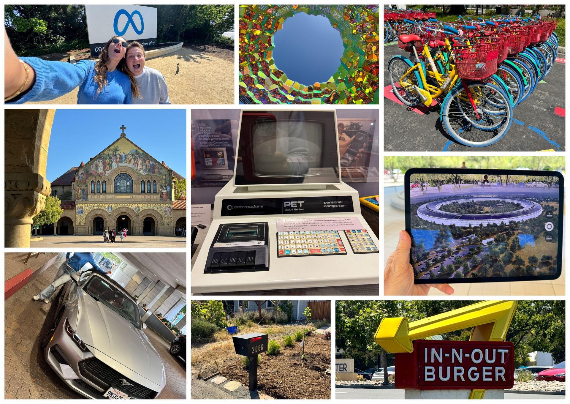 Abbiamo dedicato questa domenica a visitare la culla della tecnologia: silicon valley. Non sono riuscita ad organizzarmi per imbucarci negli uffici dei nostri brand preferiti, ma, è stato comunque interessante. Dopo colazione abbiamo ripreso possesso del nostro bolide (Mustang cabrio) e abbiamo cominciato il nostro giro con una foto al cartellone di Meta (una volta era il bel pollicione del like di Facebook…peccato). A seguire, Google. La cosa impressionante è che le aziende più rinomate hanno dei campus veramente vasti. E così è anche Google, dove abbiamo fatto un giro al visitors centre e in due dei parchi attorno. Siamo anche state tentate di impadronirci delle google bikes…ma non si poteva. È tutto molto ordinato e pulito con tantissimi spazi break per i dipendenti. C’era anche una lounge per networking per i visitatori: the huddle.