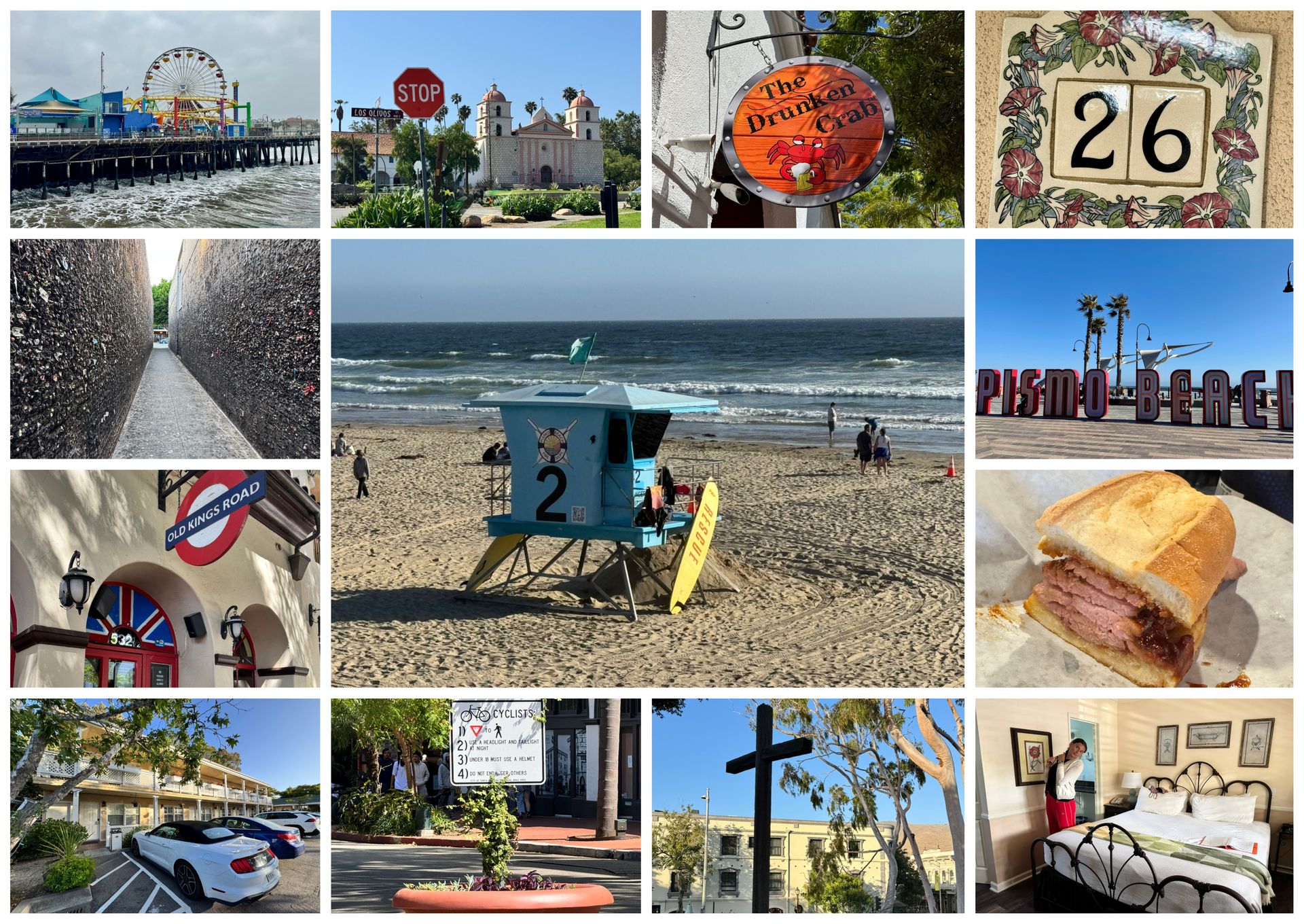 San Luis Obispo è stata la destinazione finale della giornata, a soli 15 minuti da Pismo. L’Apple Inn dove alloggiamo questa notte è una struttura molto ‘americana’. Un incrocio tra un Motel e un Bed and Breakfast. La stanza è molto carina e ha un caminetto a gas di cui abbiamo approfittato ampiamente. Ma non prima di aver fatto un giro in centro, dove il tempo rallenta, la gente sorride (sul serio), e perfino il parcheggio sembra zen. Mezza universitaria, mezza hippy-chic, tutta felicemente fuori dal tempo — è la “SLO life”, baby! C’era anche un concerto dietro la Missione! Bubblegum alley è abbastanza disgustosa da vedere (un must see secondo le guide ma non è altro che un viottolo con cicche, prevalentemente annerite dal tempo, su entrambi i lati). Abbiamo poi cenato al Fire Grill, un’istituzione locale famoso per il tri-tip sandwich (Il tri-tip è un taglio di manzo triangolare dalla parte bassa del lombo, super succoso e saporito). Io l’ho preso tradizionale con la loro salsa BBQ e G liscio. Eccezionale! E G ha mangiato i suoi primi onion rings. Anche quelli son stati molto apprezzati. La coda per l’ordinazione ricordava molto le nostre esperienze a in-and-out, ma la cucina è una macchina da guerra e sforna panini a raffica.