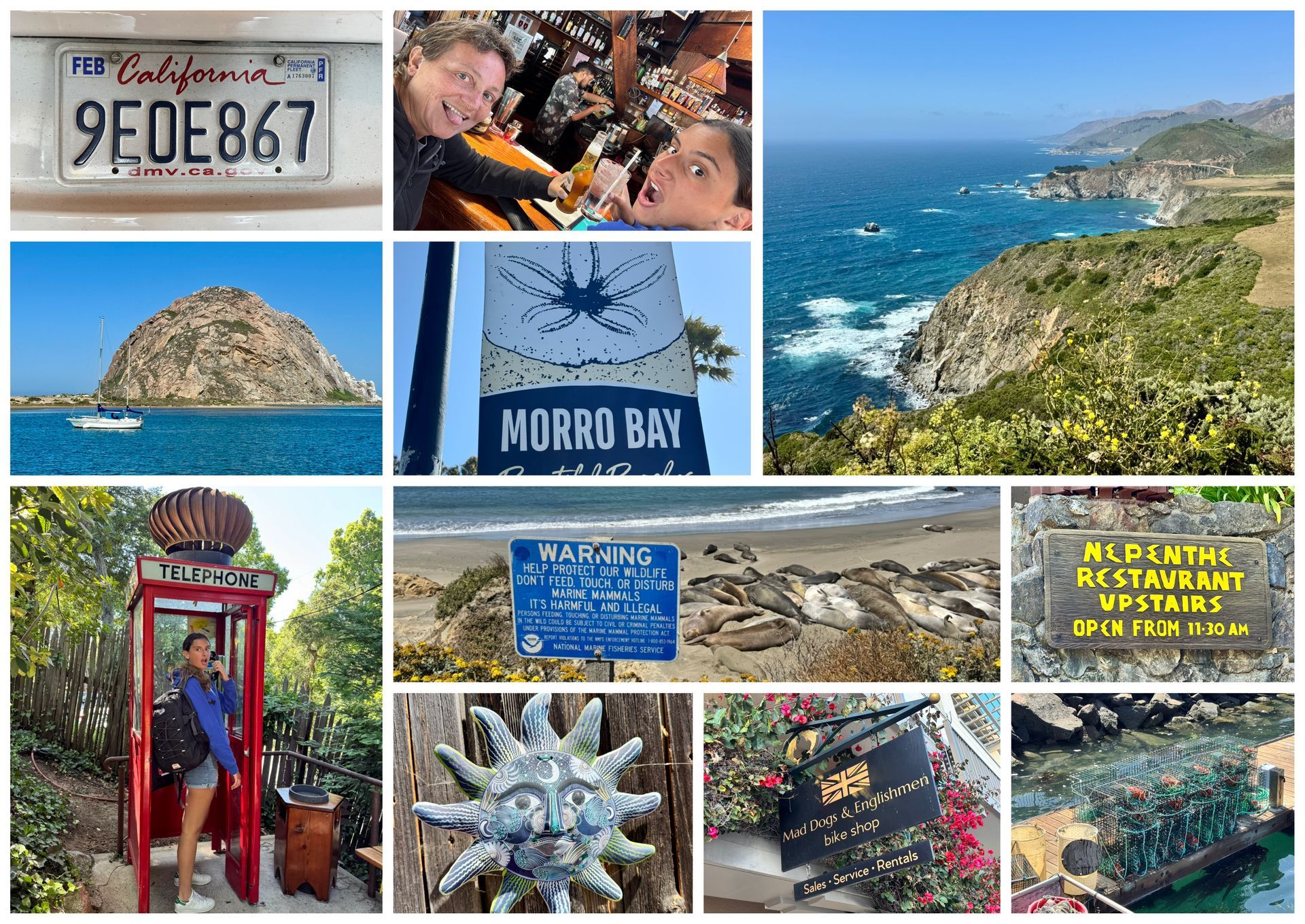 Nonostante il risveglio un pelo più faticoso del solito, alle 9.30 eravamo in pista e la prima tappa è stata Morro Bay, conosciuta per il suo iconico Morro Rock che domina il paesaggio marino. L’atmosfera è rilassata, c’è un porto di pescatori, e una baia calma frequentata da lontre, uccelli marini e kayakisti. Siamo rimaste qualche minuto ad osservare una lontra nuotare sola soletta lontana dal suo gruppo. G voleva portarla a casa…un po’ come tutti gli animali che incrociamo! Diciamo che un po’ di posto nella vasca di casa ci sarebbe :-). Non ci siamo soffermate ulteriormente perché ci aspettavano le waffles di Hidden Kitchen (un posto per colazione trovato a caso su internet). Effettivamente il posto è nascosto nelle stradine di Cambria ed è un vero amore: un giardino con pochi tavoli con una capannetta in stile hippy dove cucinano e prendono ordinazioni. E le waffles (rigorosamente gluten free e preparate con mais blu) ce le siamo proprio gustate (ne abbiamo smezzate una salata e una dolce). Un inizio di giornata top.