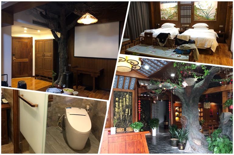 Finally, we made our way to our little home for the next two nights. A small boutique hotel in classic chinese architecture. Cute. We looked ridicoulous (again) dragging our ever increasing luggage from the car park to the entrance. There was no lift! But a kind young man helped us to carry everything up the stairs.