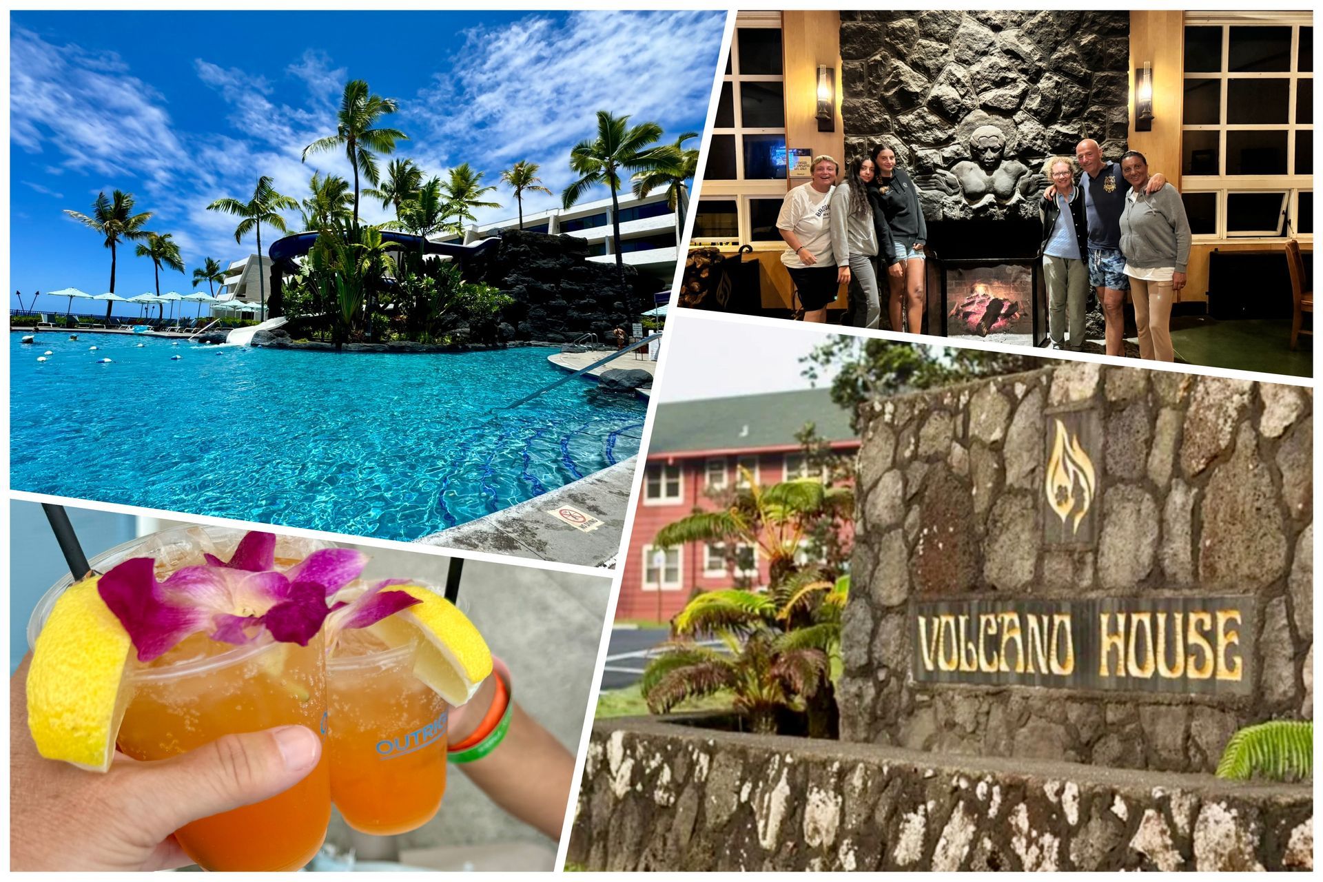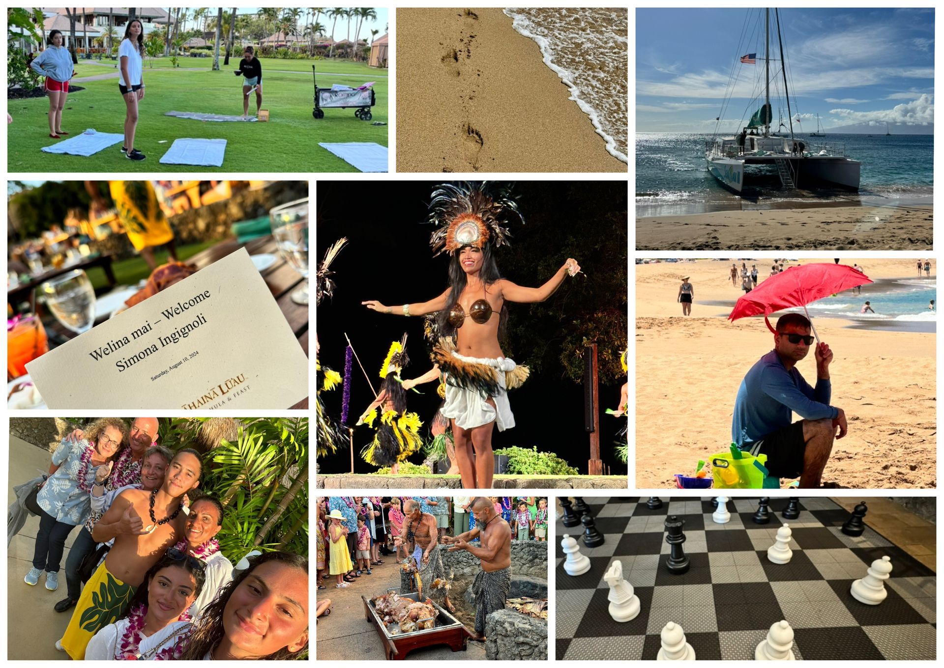 The new location is not beachy, but the resort is really awesome. And it faces the ocean perfectly for a sunset. It’s also on one of three spots on Big Island where you are likely to see Mantas feeding on plancton at night. In fact, as we were having dinner, quite a few boats pulled into the bay with lights on to attract these beautiful creatures. There was also some live music in the background. As it turned out it was Gio Conti playing! He introduced himself as we were trying to find a smoking spot for Naglaa. Gio would not let us go. He pretty much told us everything about his life: he’s from New Jersey, he has a married daughter with three kids, italian heritage from other Montecatini Terme and Benevento. He loves Italy and he’s looking for someone to go with him…any takers out there? We managed to walk off eventually and took a look at the viewing platform set up for the Mantas at the Hotel. It also overlooks all the boats snorkelling for the Mantas. However, no luck. From the Hotel’s platform we could not see any. We then went looking for Ginevra who had wanted to take a late night swim in the hotel’s swimming pool (an awesome pool with a fun looking slide). And there she was, doing headstands in the water with her father :-).