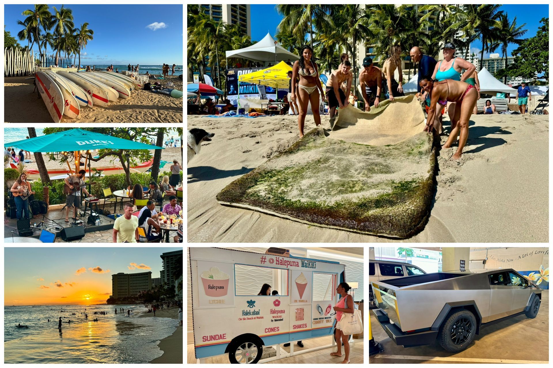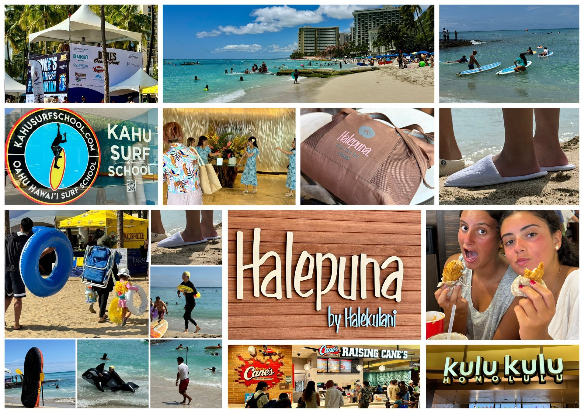 Honolulu… it’s been a long time coming. First of all, it’s a very different feel as you land. The skyscrapers in the Waikiki area made it look more like Miami or New York than Hawaii. We picked up our Suburban (the last rental on this holiday) and drove to our accomodation for the next 5 days. The hotel is very modern, but the rooms are the smallest on this holiday. But, all in all, a great position next to a busy shopping/restaurant area, and a few steps from the beach. We popped over to the beach before dinner to see if anything was going on, but there didn’t seem to be much of it close to our hotel. It might just be a tidal situation, but we will find out tomorrow. Off we went to try and find Yard House, one of the few places open late for dinner (the girls joined us a little late as they were making themselves look pretty as you can see from the picture of Ginevra’s pigtails). A lot of the other places shut between 8.30pm and 9pm like in the rest of Hawaii. Yard House have the largest selection of draft beer in the world and we had an aperitivo at the bar as we waited for our table (how could they run out of passion fruit!). The barman was no Veronica for sure (the lady from Kauai Shores who made amazing cocktails). Dinner on the other hand, was pretty good…for American standards of course.