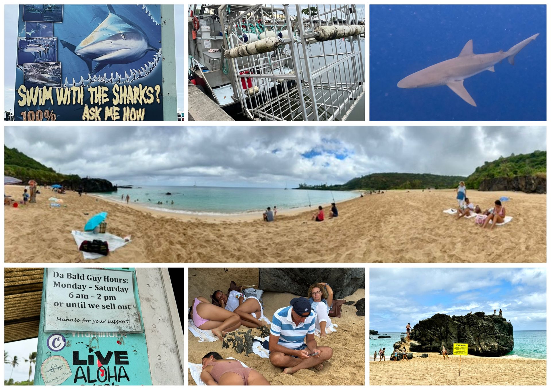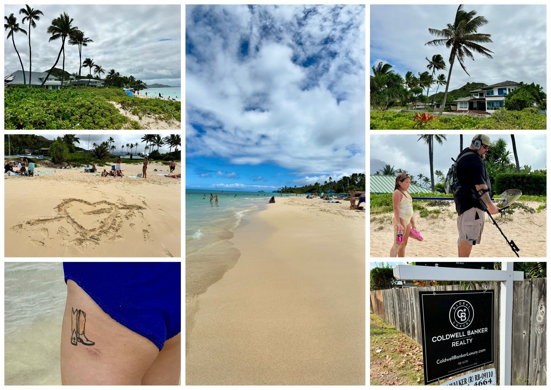 After lunch, we made our way to the final stop for the day: Lanikai beach. The residential area around the beach is very posh. We saw some beautiful houses right on the beach, but the whole place was somewhere you’d want to call home. And the beach was awesome. So we vegged out for the afternoon. And Ginevra ran across Shelley the turtle whilst swimming (that’s what she named the turtle). And me? Well I saw some interesting animals on the beach: a guy with a metal detector that first did a little look around in the water followed by the beach (he found nothing but looked decidedly odd), and a lady with a lot of tattoos, including one of a pair of camperos boots.