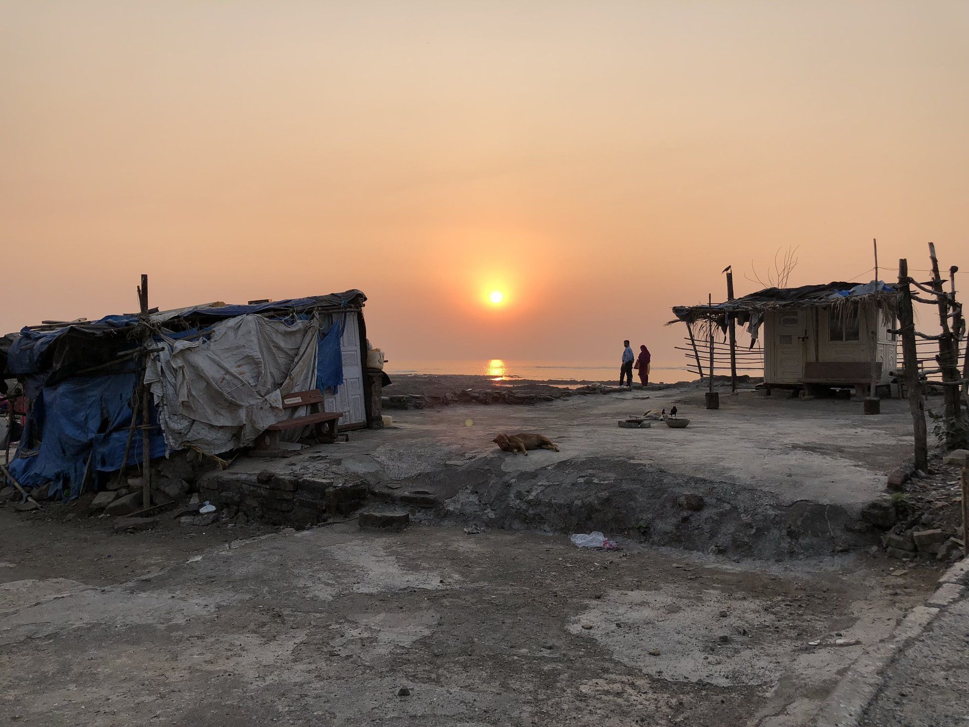 We walked quite a while through the charming streets in Bandra and Ranwar chatting away until we got to Joggers Park along the Ocean where we took a rickshaw back home. Sunset over the sea was amazing. In one of the sunset pictures you’ll see the fishermen shacks and rocks where they dried the fish. Ranwar was after all a fishing village to start with, but aside from a few fishing boats there is very little left of the original community. Mumbai itself is built across seven islands.