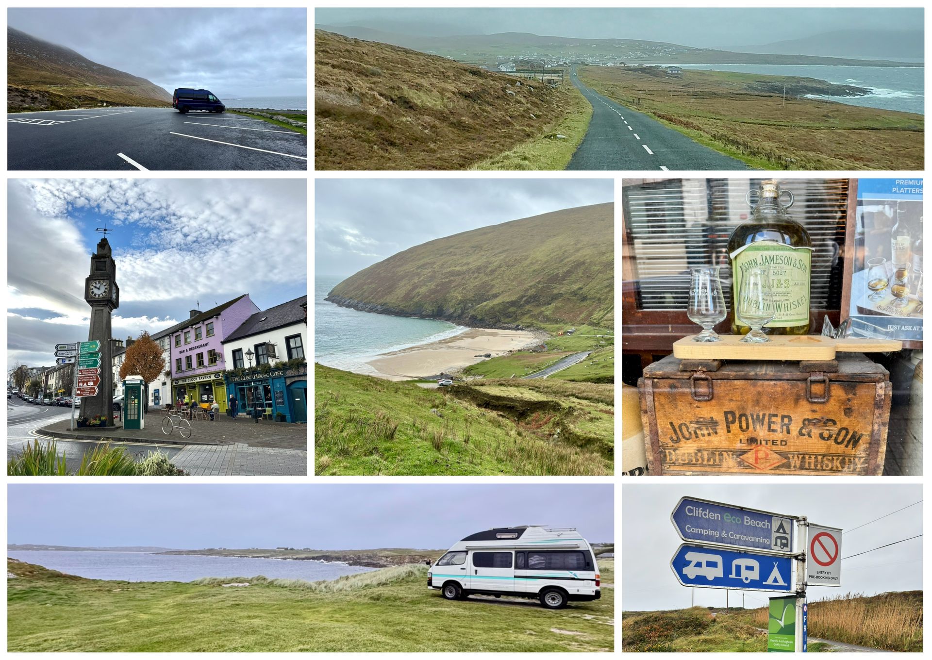 Ho fatto una prima pausa a Westport per un caffè e una delle calls lavorative di oggi. Poco più di un paesello, ma molto carino. Ho incrociato Newport subito dopo, altrettanto suggestivo con tanto di fiume che lo attraversa. Ma due delle tappe più suggestive sono state su Achill Island, la più grande isola d’Irlanda. La spiaggia di Keem si raggiunge percorrendo una strada a strapiombo sul mare che ha messo a dura prova le mie vertigini, e il villaggio deserto di Slievemore facendo zig zag tra le pecore :-). Una peculiarità dell’isola è che per la prima volta da giorni, il colore predominante delle case era bianco. Credetemi che mi è sembrato proprio strano. Era tutto bianco. E come nel resto del paese le case erano copie l’una dell’altra a gruppetti. Abbastanza bizzarro…